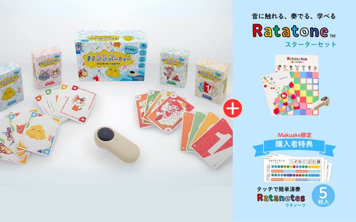 4種類すべてのカードがそろった“完全版”。ききみみセット(おならカード・どれみカード・わおんカード)に、さらに「ねこカード」が加わります。多種多様な音を聴き、大いに楽しめます。さらにMakuake限定特典として、演奏体験ができる楽譜シート「Ratanotes」5枚付き。収録される楽曲は開催期間中に発表予定です。どんな曲が含まれるのか、楽しみにお待ちください。
