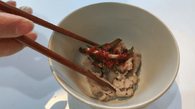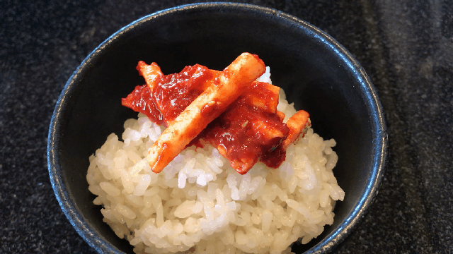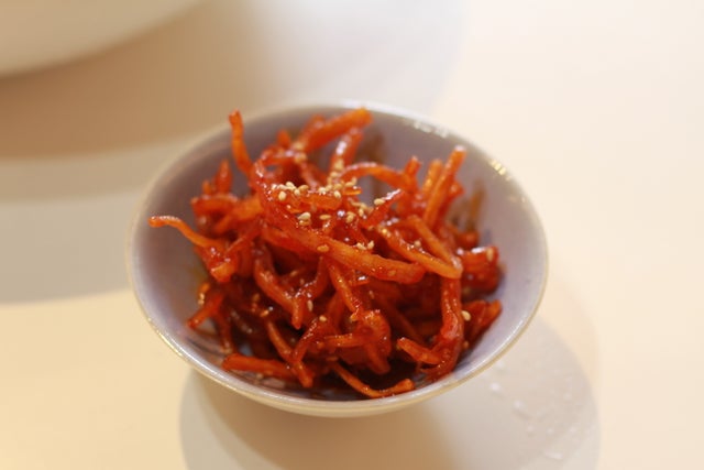 厚みのある身の食感と甘みがキムチのタレと相まって驚きの仕上がり。
