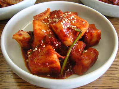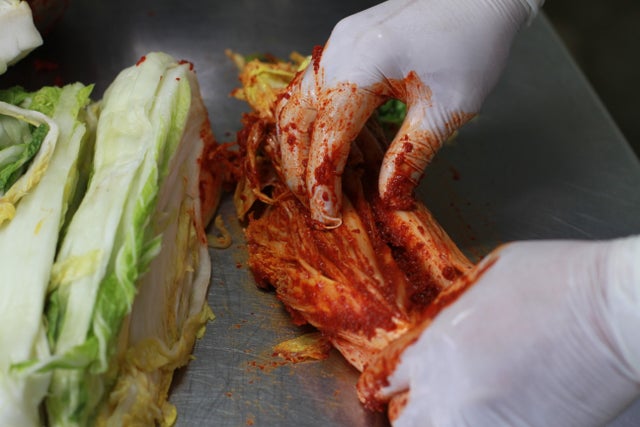作りたてのキムチは水分がほとんどなく、野菜も新鮮さを保ったままの状態。