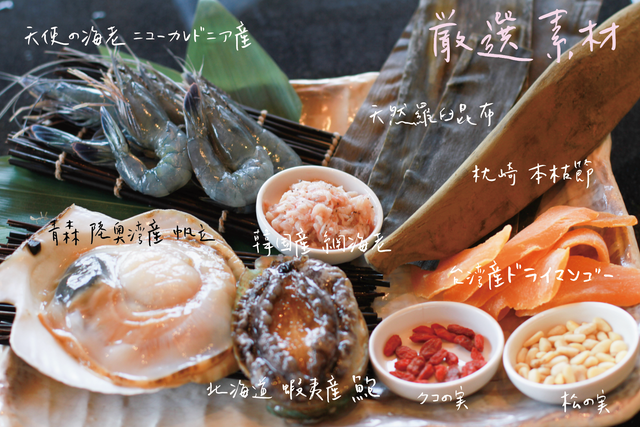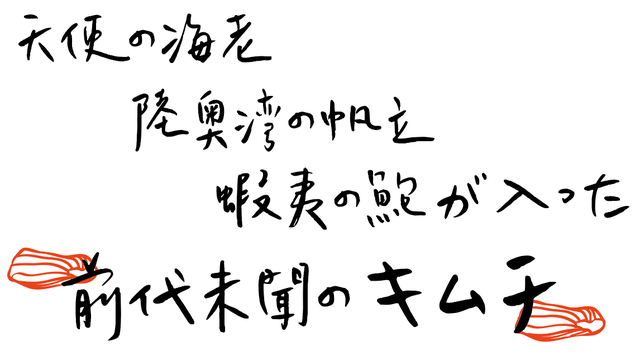 - 天使の海老、陸奥湾の帆立、蝦夷のアワビを白菜で包み出汁までこだわる前代未聞のキムチ