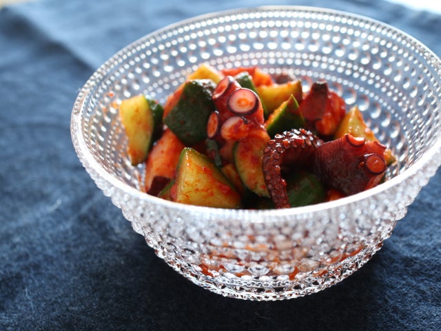 タコときゅうりをぱぱっと和えただけの手軽さ。