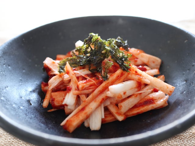 長芋のキムチも切って混ぜるだけ。調味料も入りません。