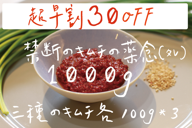 超早割 特選キムチの薬念(タレ)&キムチ 3種各100g おまけ付き