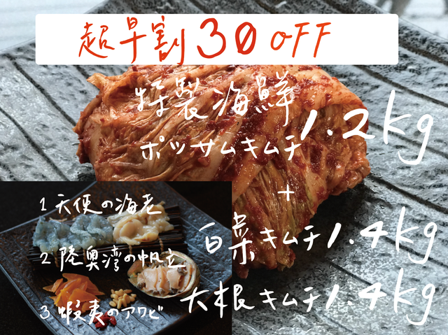 早割 海鮮キムチ1200g&キムチ1400g&カクテギ1400g