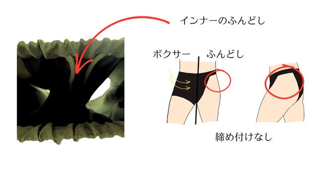 - 見た目は変わらず、ラクして快適になりたいを形にした インナーに締め付けを無くしたふんどしを採用