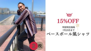 【早割】15%OFF 亀田縞ベースボール風シャツ 2枚