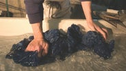 湯もみは小千谷縮の最終工程であり、独特な生地の凹凸「シボ(皺)」を表現する重要な作業です。