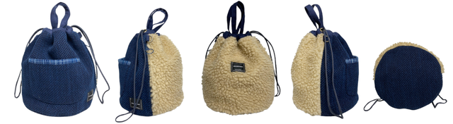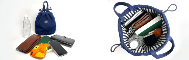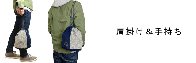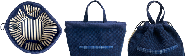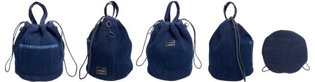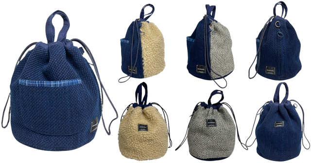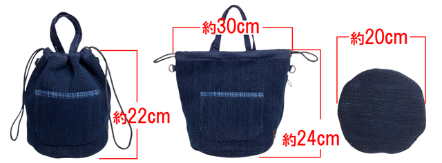 ・全て、武州正藍染刺子生地を贅沢に使用した巾着バッグ。(ALL藍染刺子)