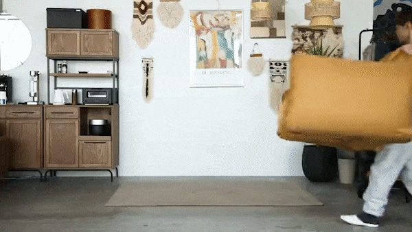 QUBIQSOLOの重さはわずか4KG。今までは椅子を持ってくるか床に座るかだったのが、女性や子供でも1人でソファーを持ってきてくつろぐことができます。