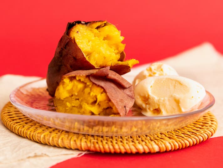 ・焼き芋にアイスをのせてスイーツ仕立てに
