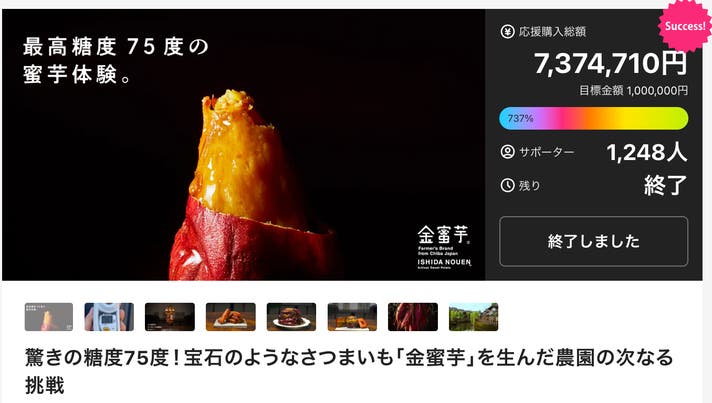 以前実施したMakuakeプロジェクトでは、1200名を超えるサポーターの皆さまに応援購入いただきました。石田農園のさつまいもの美味しさが多くの方々に届いて大変嬉しく思います。