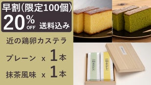 ■【早割】近の鶏卵カステラ2本(プレーン+抹茶)送料込み