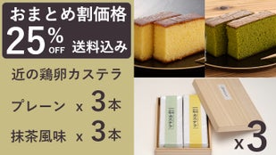■【おまとめ割】近の鶏卵カステラ6本(プレーン3本/抹茶3本)送料込み