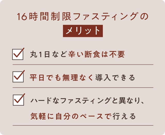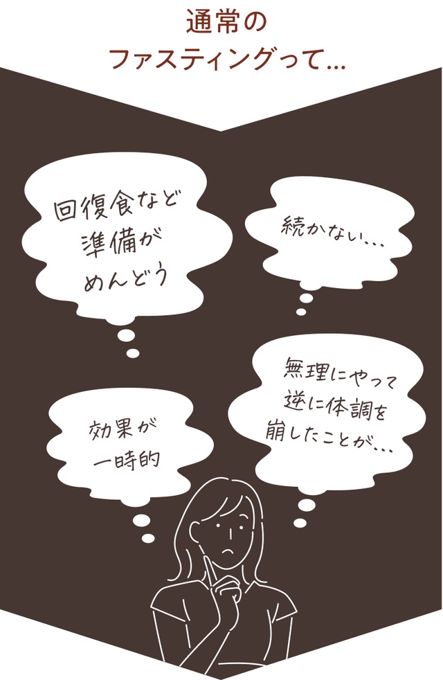 通常のファスティング(丸1日〜数日間かけて行うもの)と比べて、日々の生活に手軽に取り入れやすく、初心者さんや忙しい方にもおすすめなんです。