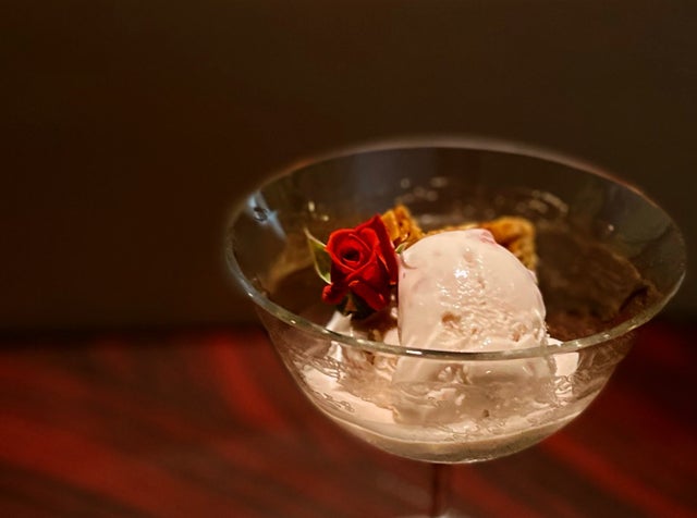 《イスパハン風のアイスクリーム、ライチリキュールをかけて》