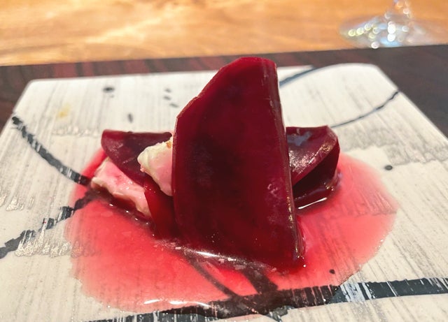 ビーツを3日間昆布のお出汁に付け込んで見事な和食食材に生まれ変わりました。