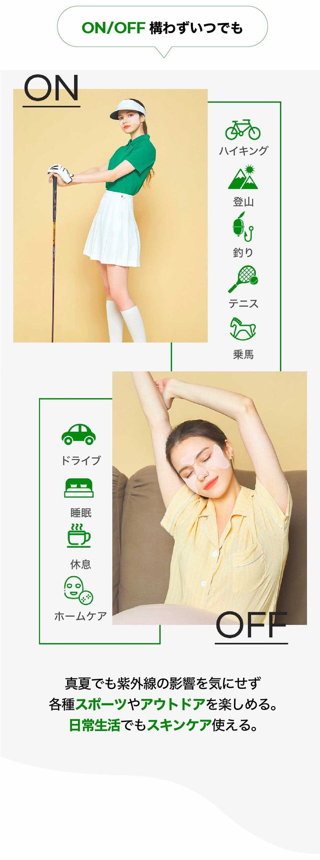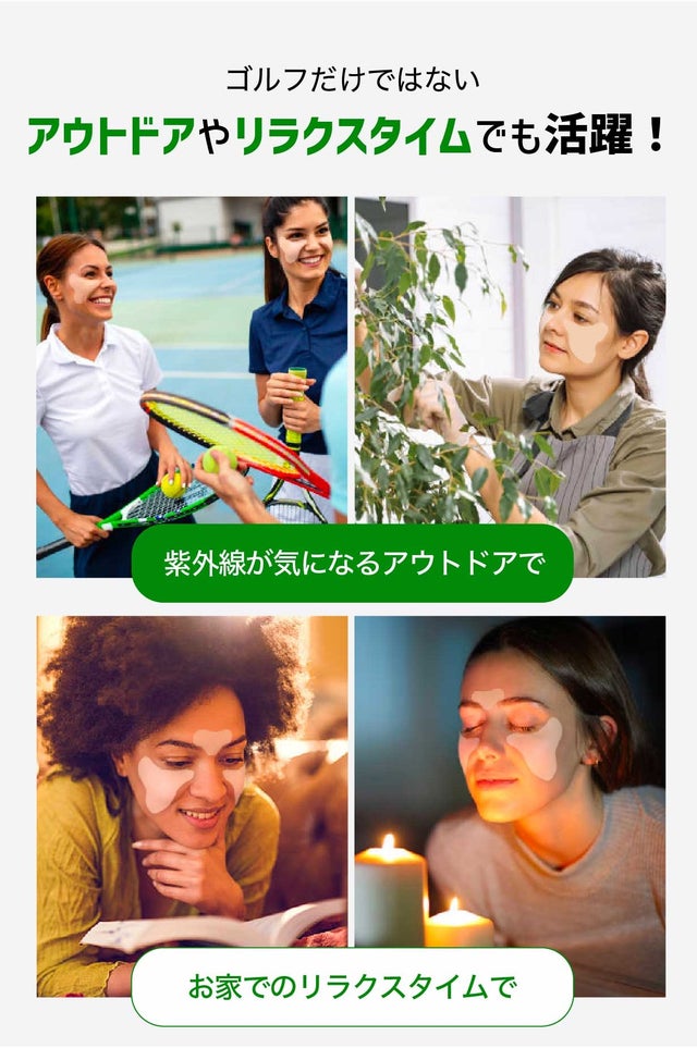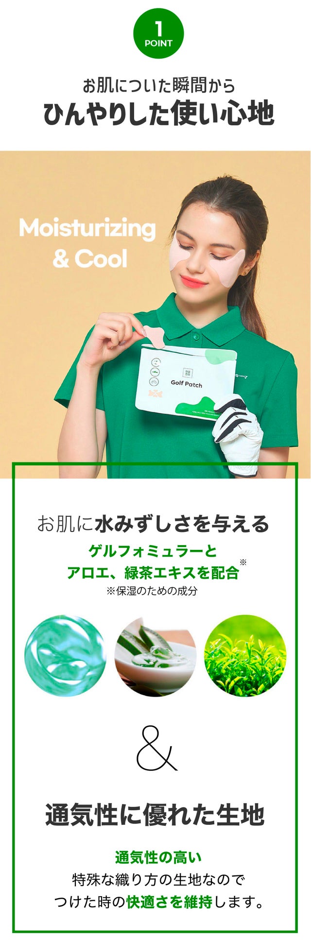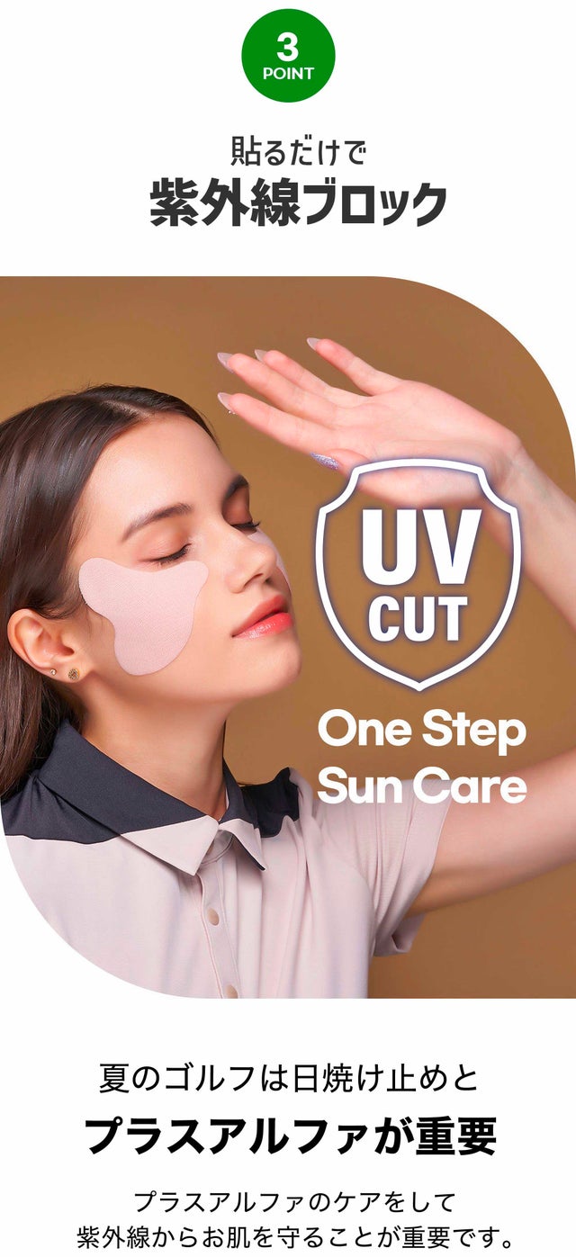 - ゴルフ場での日焼けや紫外線をしっかりガードするスキンケアパッチ。ラウンドが終わるまでケアします
