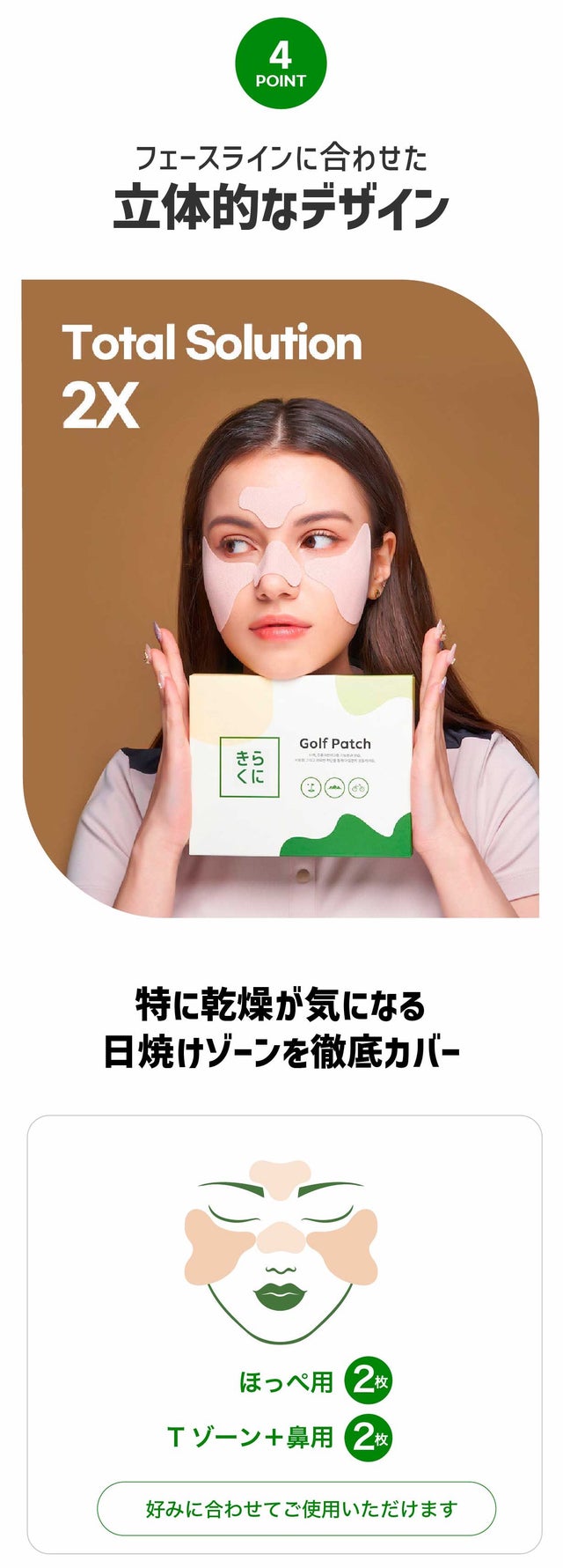 日焼けゾーンの4枚入りで日焼けやすい目の下、鼻背、眉間までポイントになるフェイスラインを効果的にカバーできます。