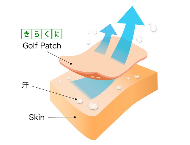 紫外線をしっかりカットする貼るタイプの「きらくに」ゴルフパッチは日焼けを気にすることなくゴルフしながらスキンケアが同時にできる新感覚のアイテムとして紫外線対策、保湿効果が得られます。