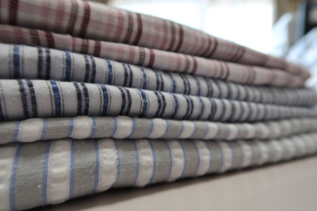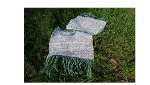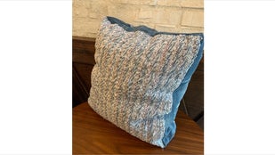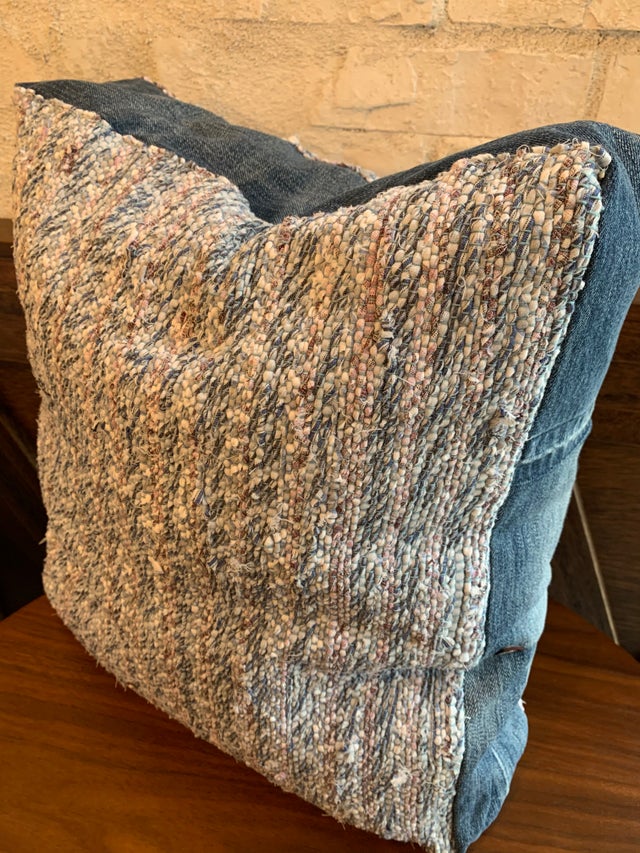 想い出の生地を使用して織り仕上げのクッションを作製します。