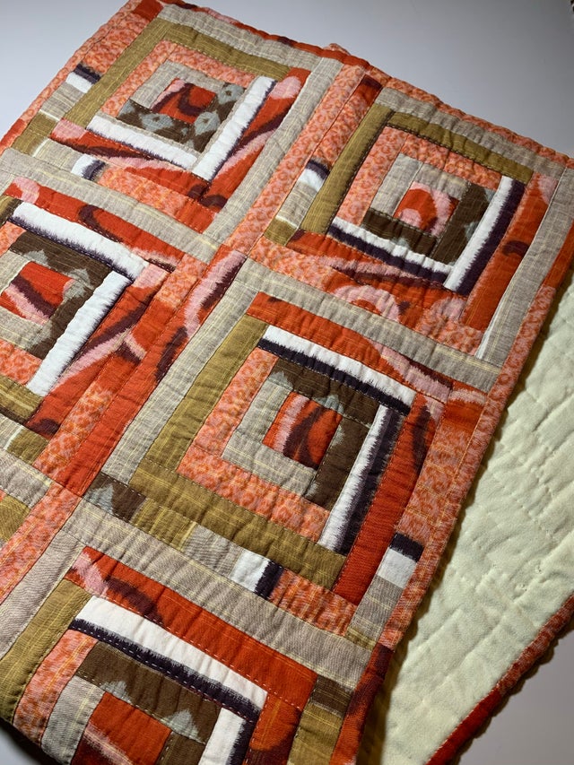 長い療養生活で使っていたふとんガワをパッチワークしてタペストリーにし