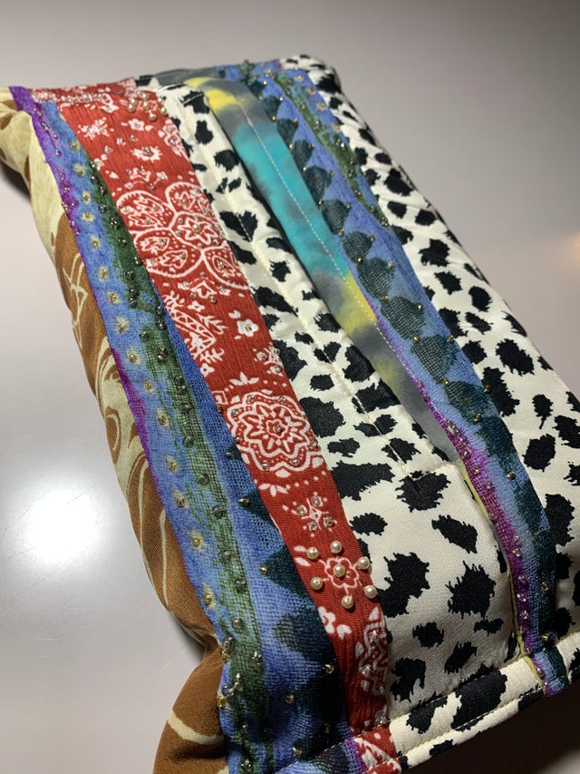 想い出の生地を使用してデザインクッションを作製します。