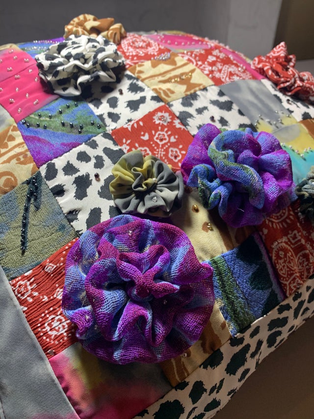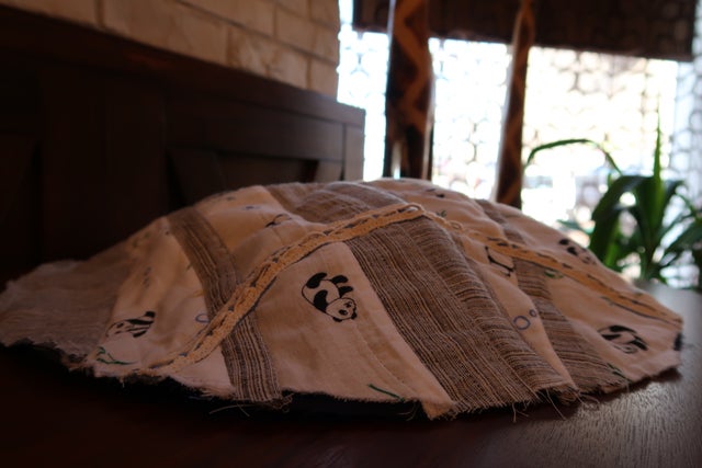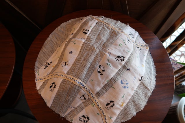 想い出の生地を使用してタペストリーを製作します。