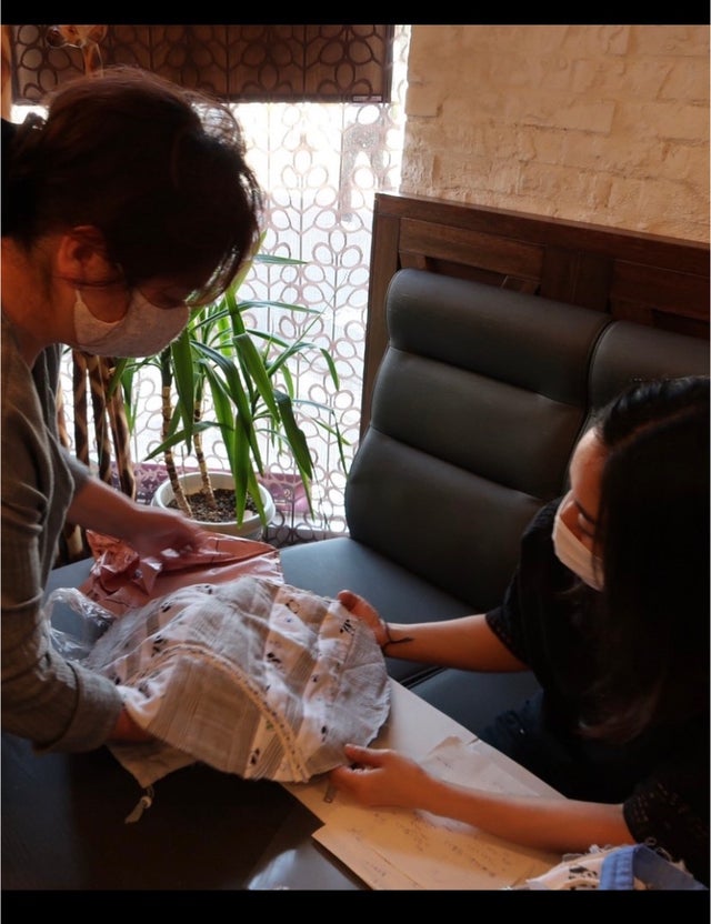 想い出の生地を使用して身近における