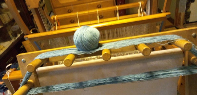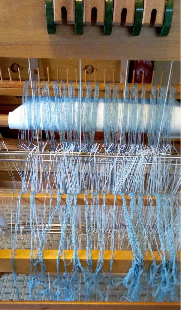 5.青空の色を経糸に機にかけました。