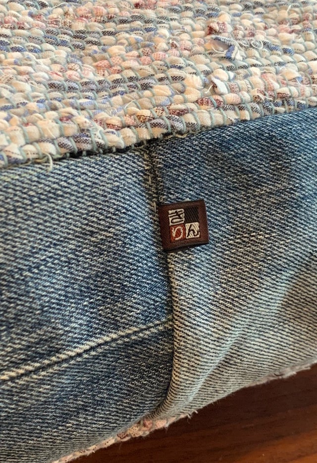 8.ご主人のお気に入りだったジーンズを、剥ぎを入れたデザインでマチに