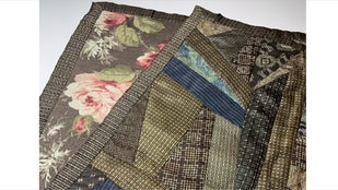 想い出の生地を使用してタペストリー(パッチワーク仕上げ)を作製します。