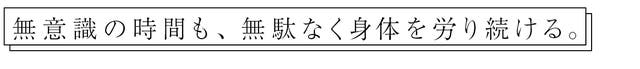 無意識下にあるこの時間で効率よく身体を労るためには、不必要な負荷を与えず、身体を疲弊させないこと。