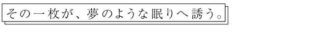 翌朝目覚めるまで、疲弊した身体を労りながら、いつまでも優しく包みます。