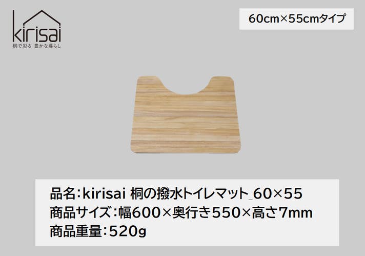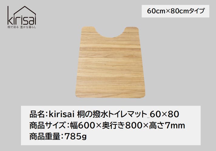 「kirisai_桐で彩る豊かな暮らし」桐の魅力をもっと多くの人に伝えたい!創業30年余り桐の魅力を追及してきたオスマックが手掛けた渾身のブランド。桐の優れた特性を活かし、桐の弱点を補い今の暮らしに調和する「住の道具」シリーズをつくりました。第五弾はキッチンから抜け出して住へ。桐の撥水トイレマットをご紹介。洗濯不要のトイレマット。洗わない新常識。桐の消臭効果でトイレを快適空間へ。ご結婚やお引越しのギフトとしてもぴったりな一品です。