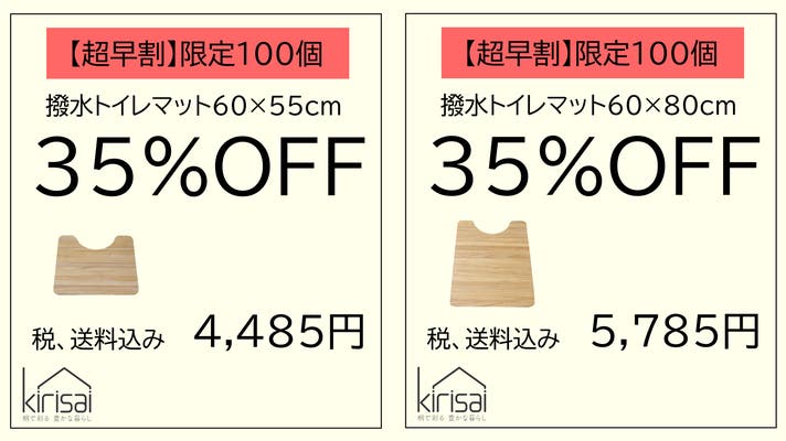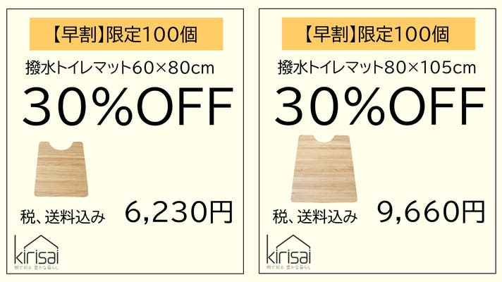 一般販売予定価格:桐の撥水トイレマット60×55cm 6,900円(税込)×2 計13,800円