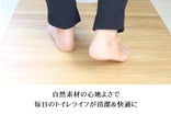 桐の調湿効果でマットが常にサラサラだから素足で踏むのが気持ちいい。湿気がこもりがちなトイレでもマットの表面は常にサラッとした状態が保たれます。お風呂上りに素足で乗ってもヒヤッとせず、布製のマットのように不快になることもない。木のぬくもりを素足で感じられる心地よさを毎日実感できます。