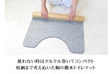 使わない時はクルクルと丸めてポンっとコンパクトに収納できるから、布のトイレマットとの併用もできます。収納場所に困らず隙間に収納可能です。