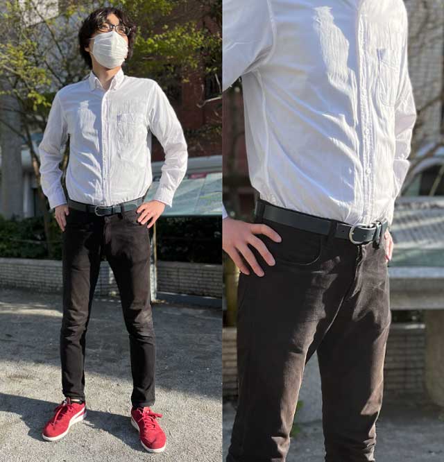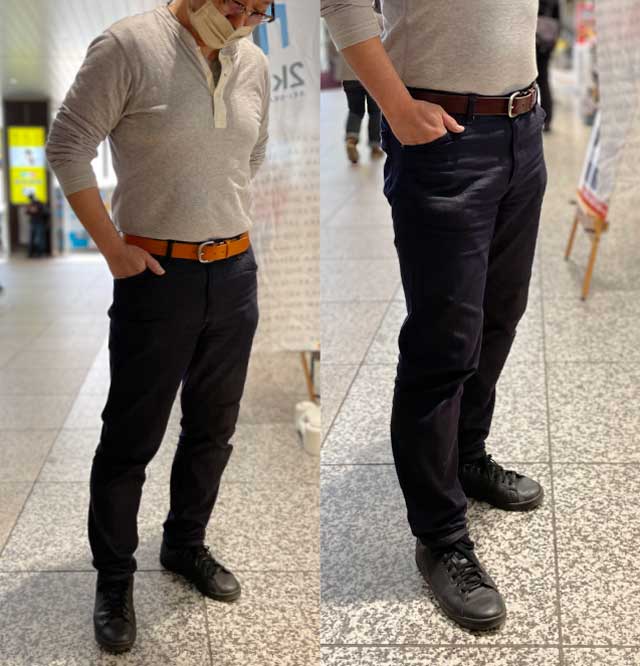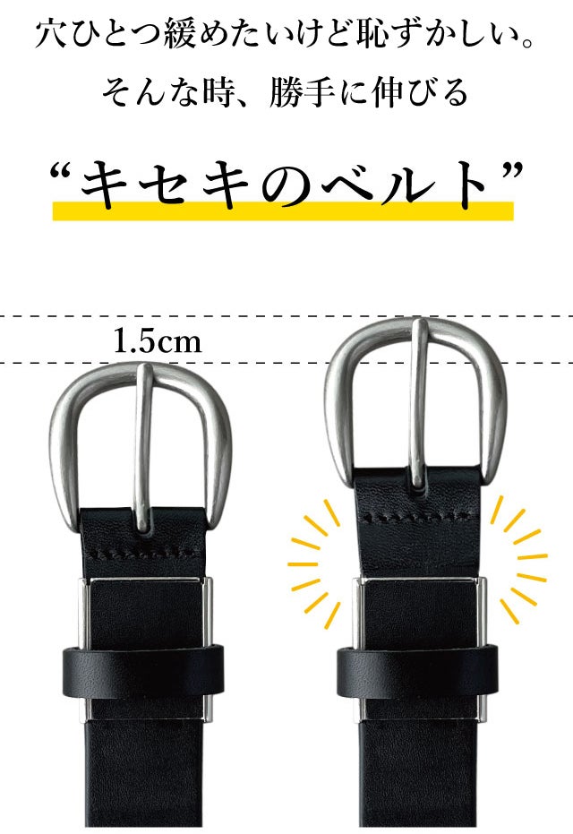 しかしこのベルトなら「自動」で1.5cm伸びてくれるので見た目の変化なく使っていただけます。