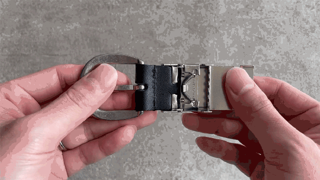 バックルに1.5cm伸縮する強靭なバネが仕込まれています。