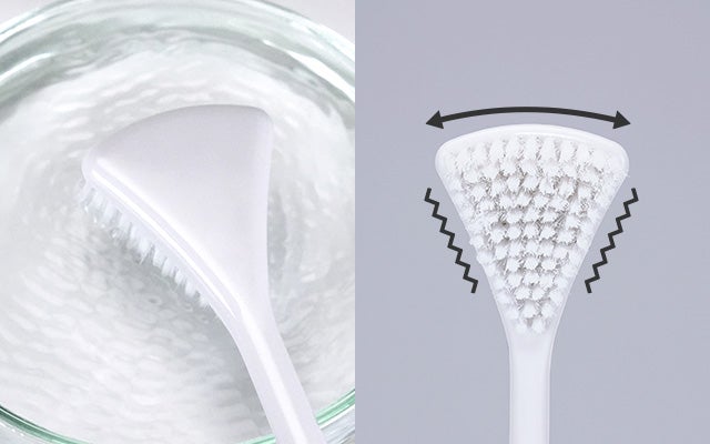 - 約16,000本の極細毛が細かい舌乳頭に入り込み、汚れをかき出す