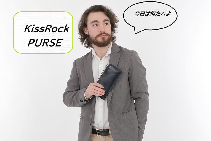 がま口の特徴のつまみを財布の中に隠しました。 英語でKISS ROCK PURSE です。