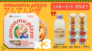 【Makuake割 10%オフ】アムアムピザ3枚と牛乳1本とプリンとヨーグルト