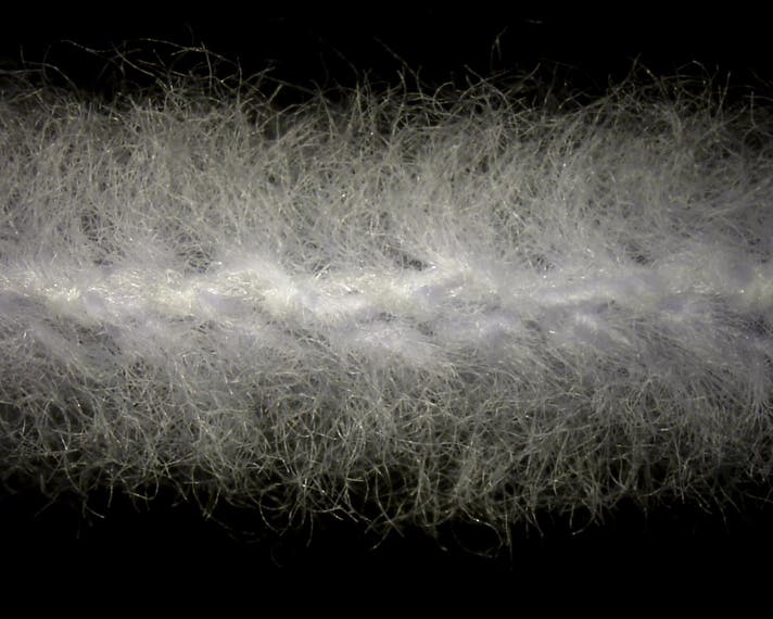 ふっくら感の秘密は糸にあります。糸の撚りと逆方向に極細の糸を巻くことで、撚りを戻し、ふっくらとした糸になっているのです。