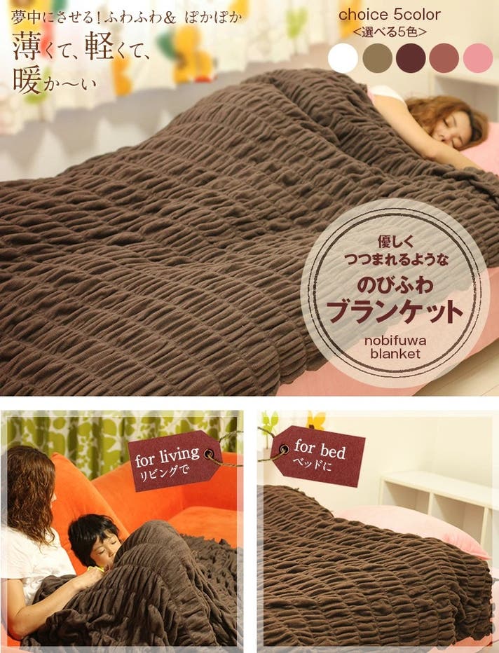 おかげさまで「のびふわブランケット」は、2015年発売開始以来、通販雑誌やECサイトで多くの方にご愛用いただきました。