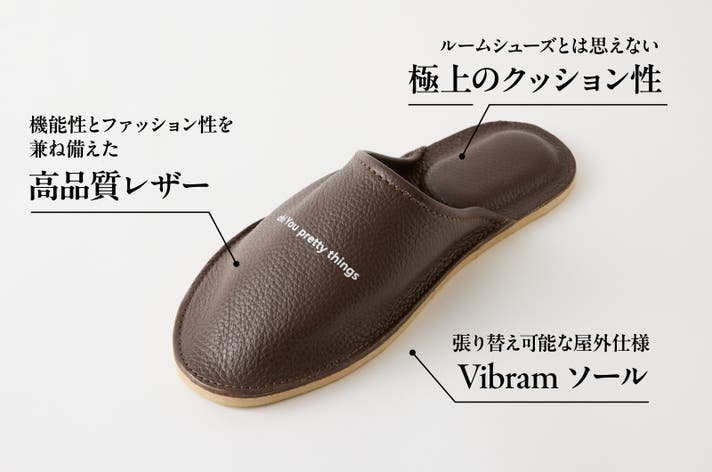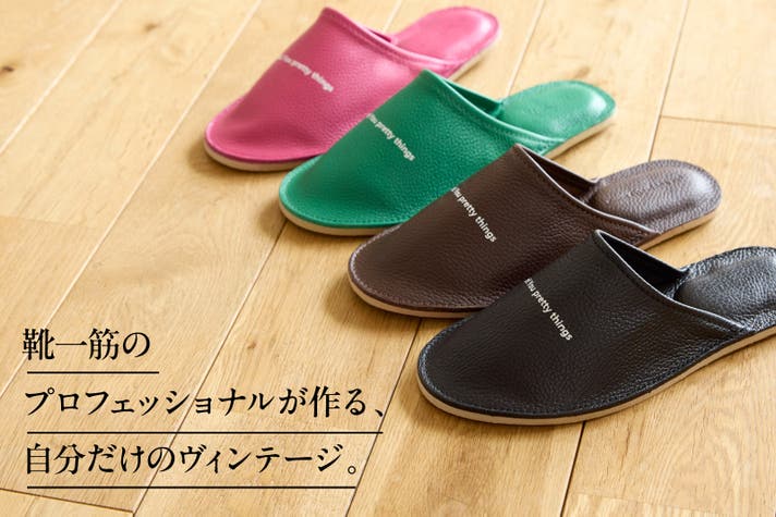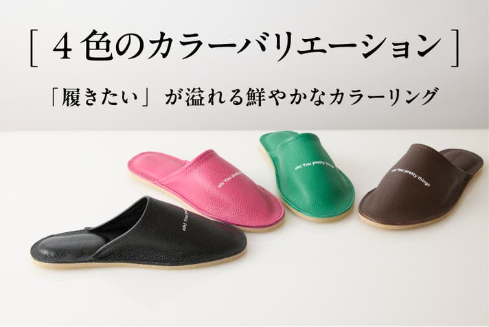 履いている時はもちろん、履いていない時にもあなたの気分を上げてくれる、そんなルームシューズに仕上げました。