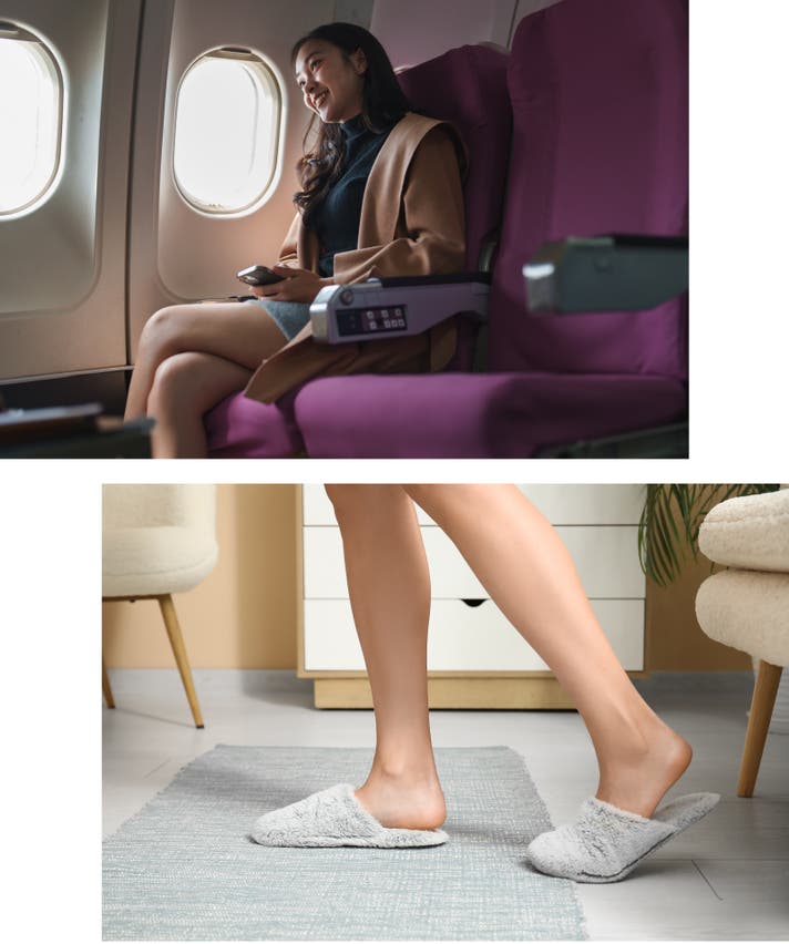 - 【屋外仕様のソール】ちょっとした外出の他、旅先のホテルや飛行機の中も足元のリラックスタイムに。