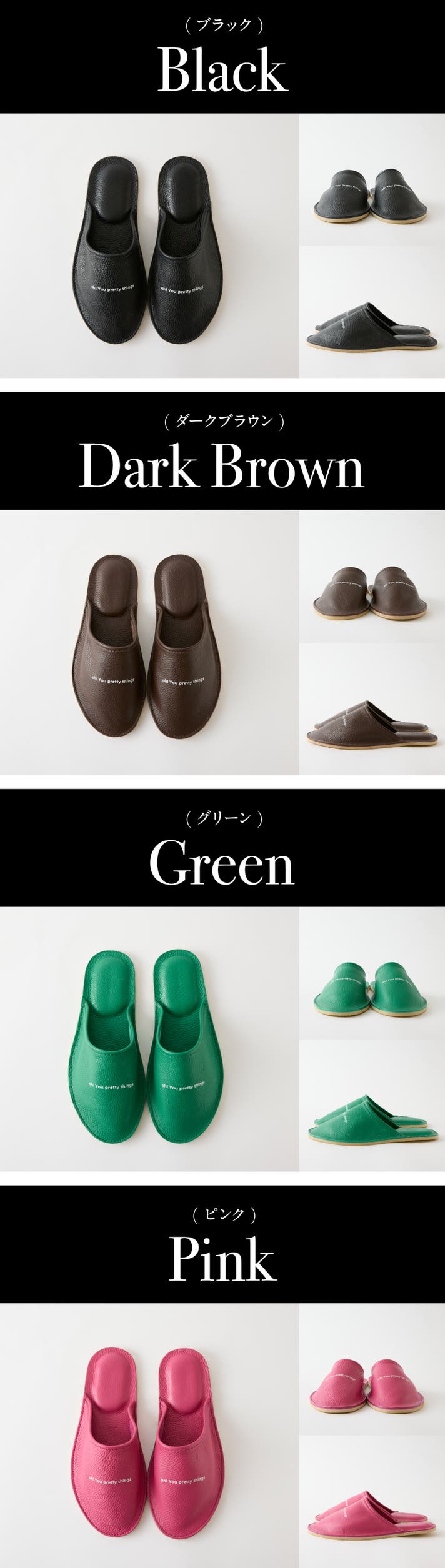 ※カラーはブラック/ダークブラウン/グリーン/ピンクの4色からお選びいただけます。