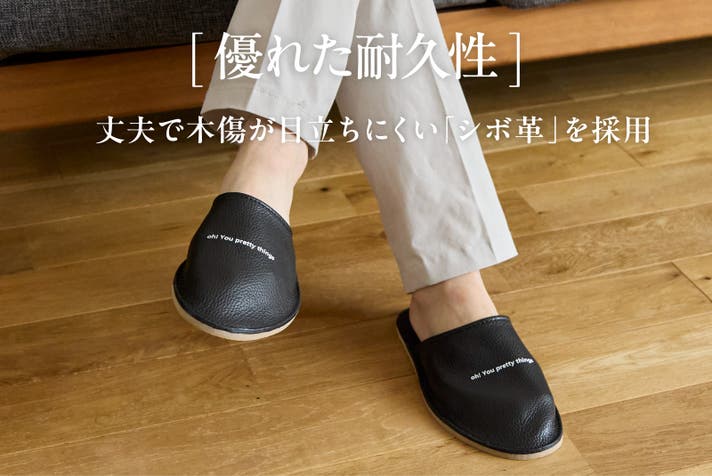 そんな楽しみをルームシューズでも味わっていただきたいという想いから、イタリアMastrotto社のレザー素材を採用しました。