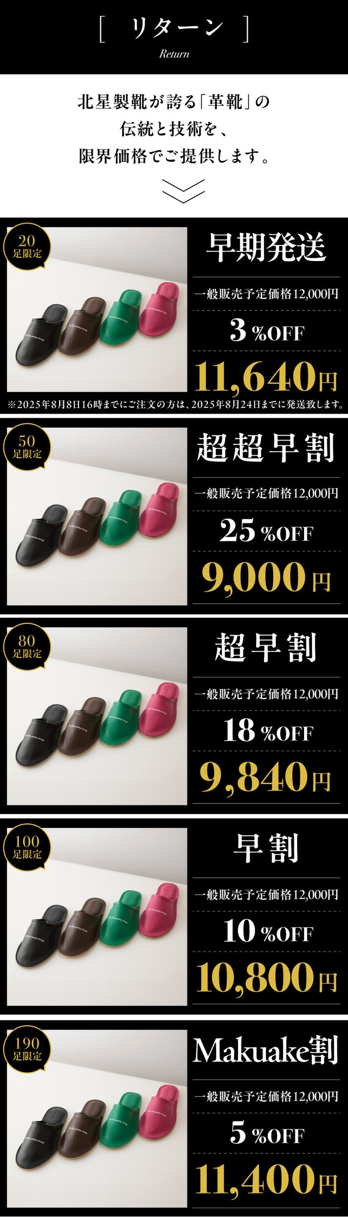 【Makuake割5%OFF】レザールームシューズ【190足限定】