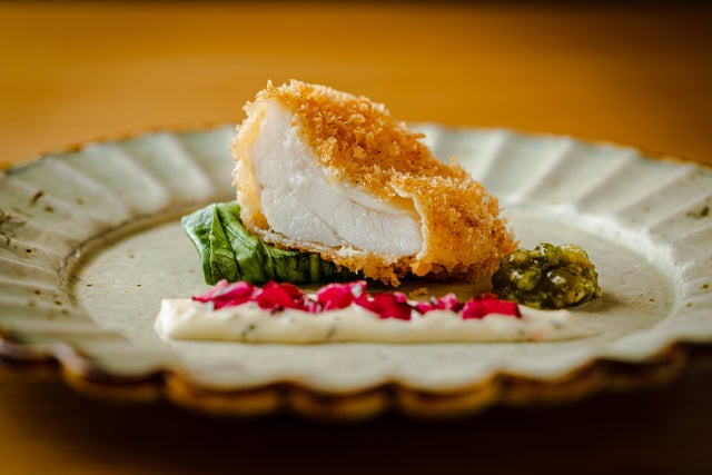 そのほか、揚物の「みの揚げ」では、じゃがいもの衣をまとわせてからりとあげたクエに、自家製のタルタルソースを添えてご提供。